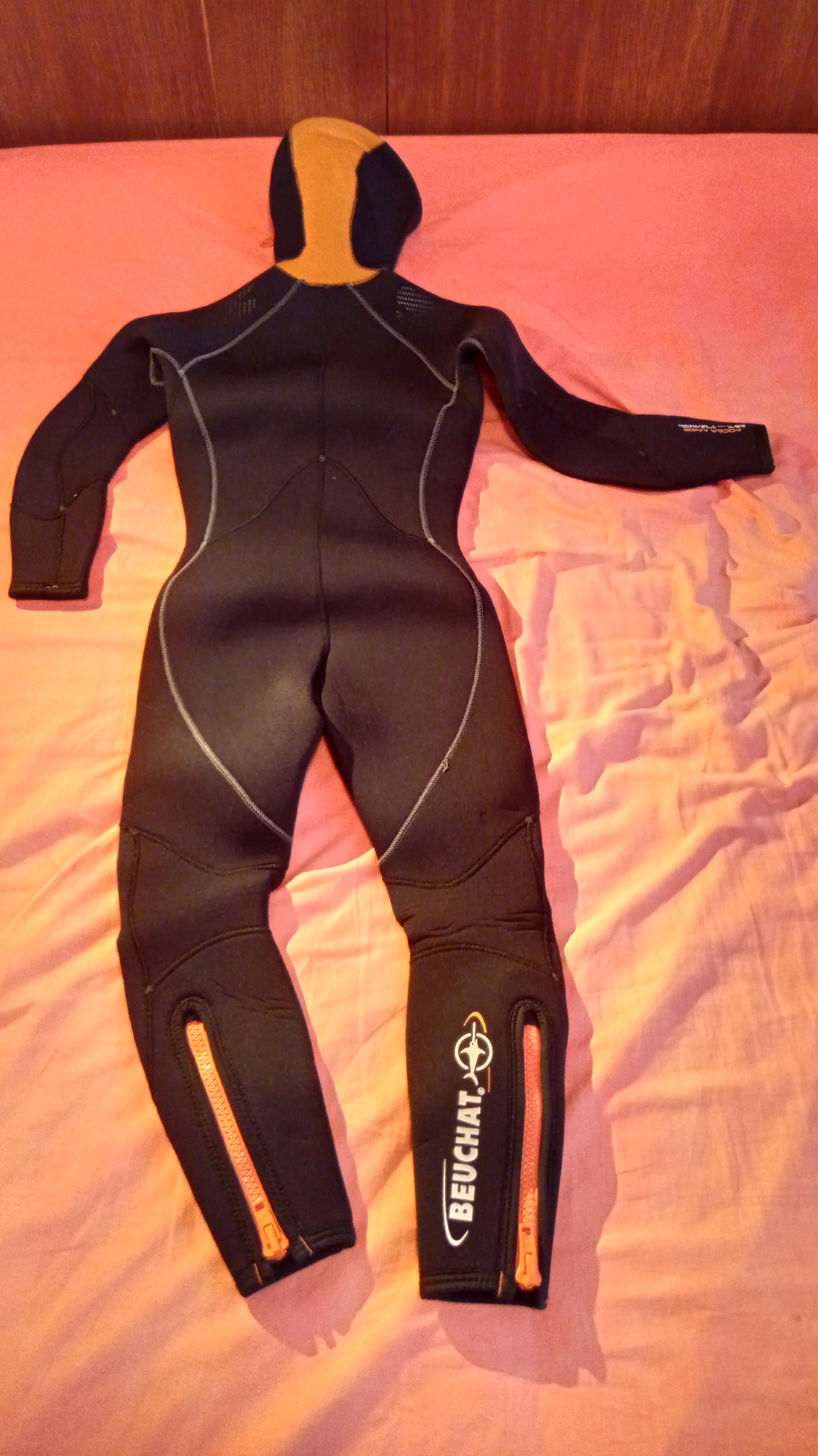 Couleur noire , fermeture Ă glisiĂšre orange, avec des extrĂ©mitĂ©s en bords roulĂ©es pour faciliter lâhabillage et limiter les entrĂ©es dâeaux, elle a de long zip aux chevilles pour un habillage sans forcer, des renforts en Supratex 2 aux genoux.